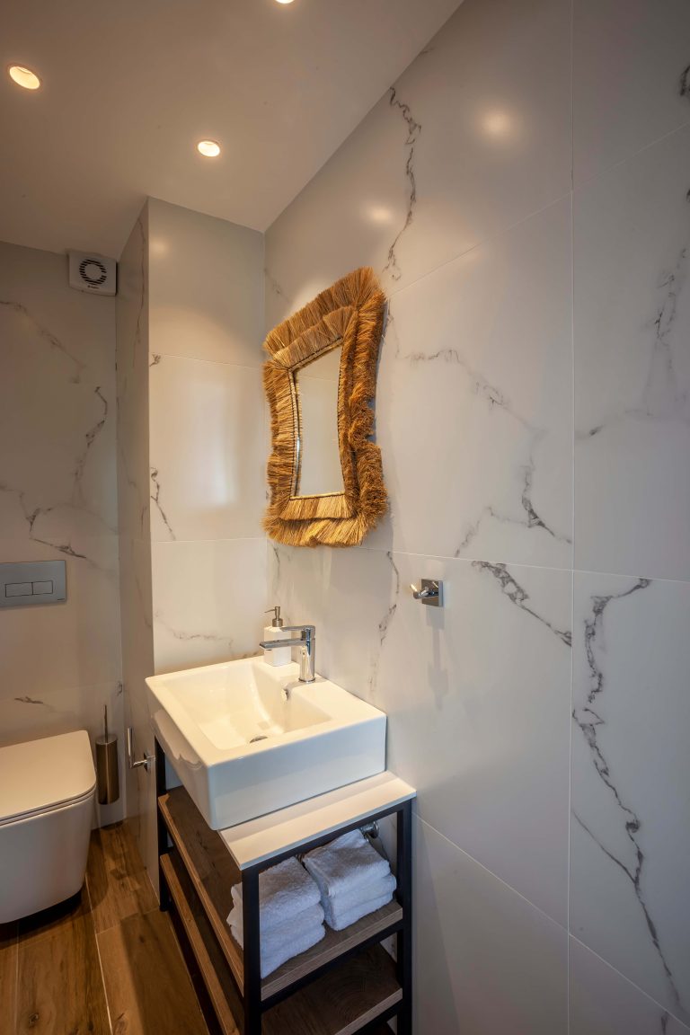 Μέρος της βίλας είναι και έναs δίχωροs ξενώνας με ιδιωτικό μπάνιο και θεα τον κήπο ,τo οποίο είναι προσβάσιμo με ξεχωριστή εξωτερική είσοδο.